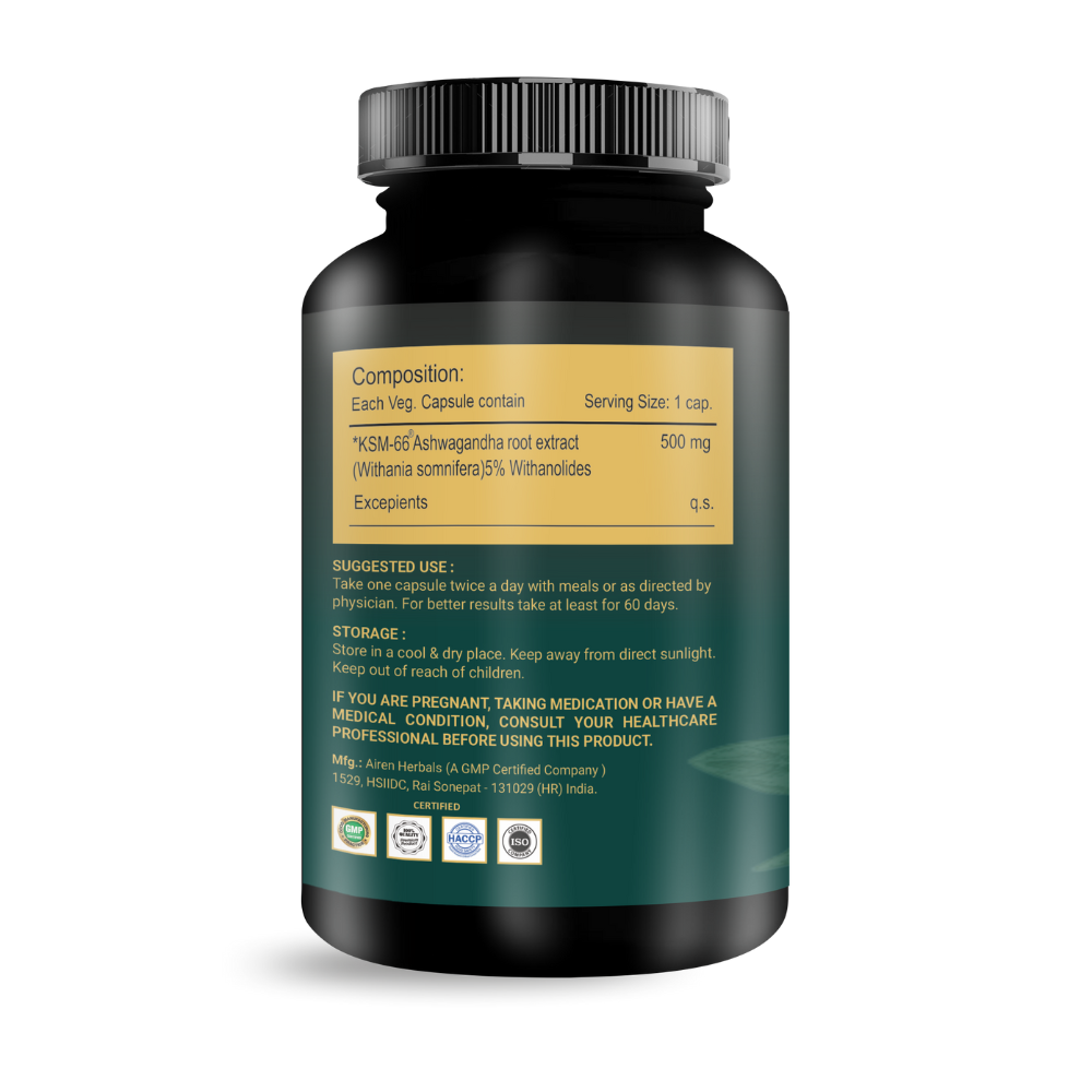Ashwagandha KSM 66 Increase Stamina and Energy Level Reduce Stress and & Anxiety 60 Veg Capsules