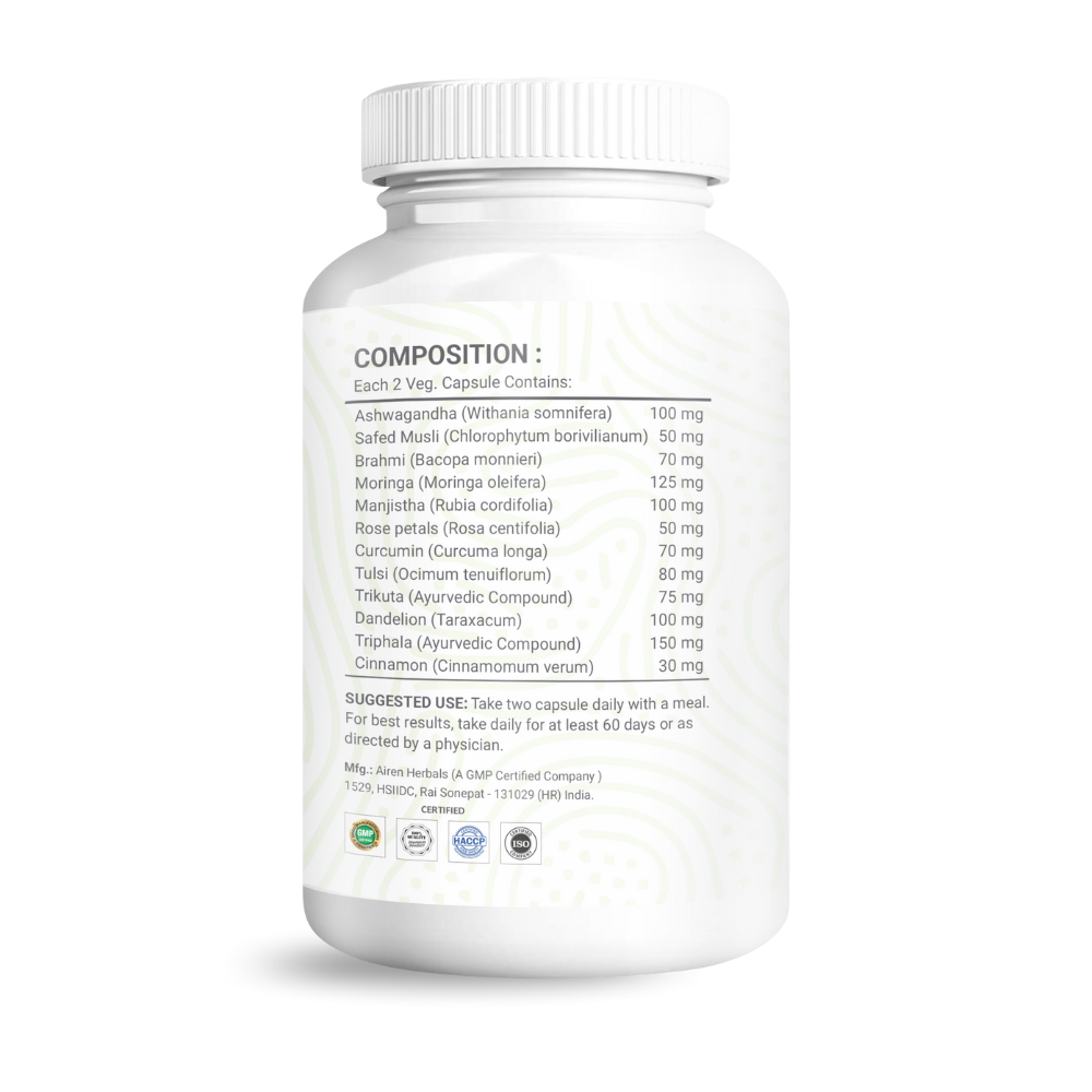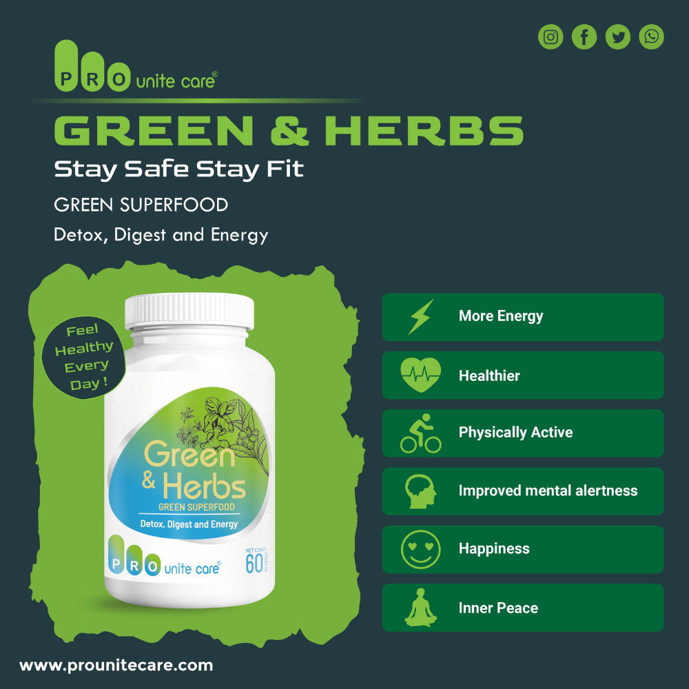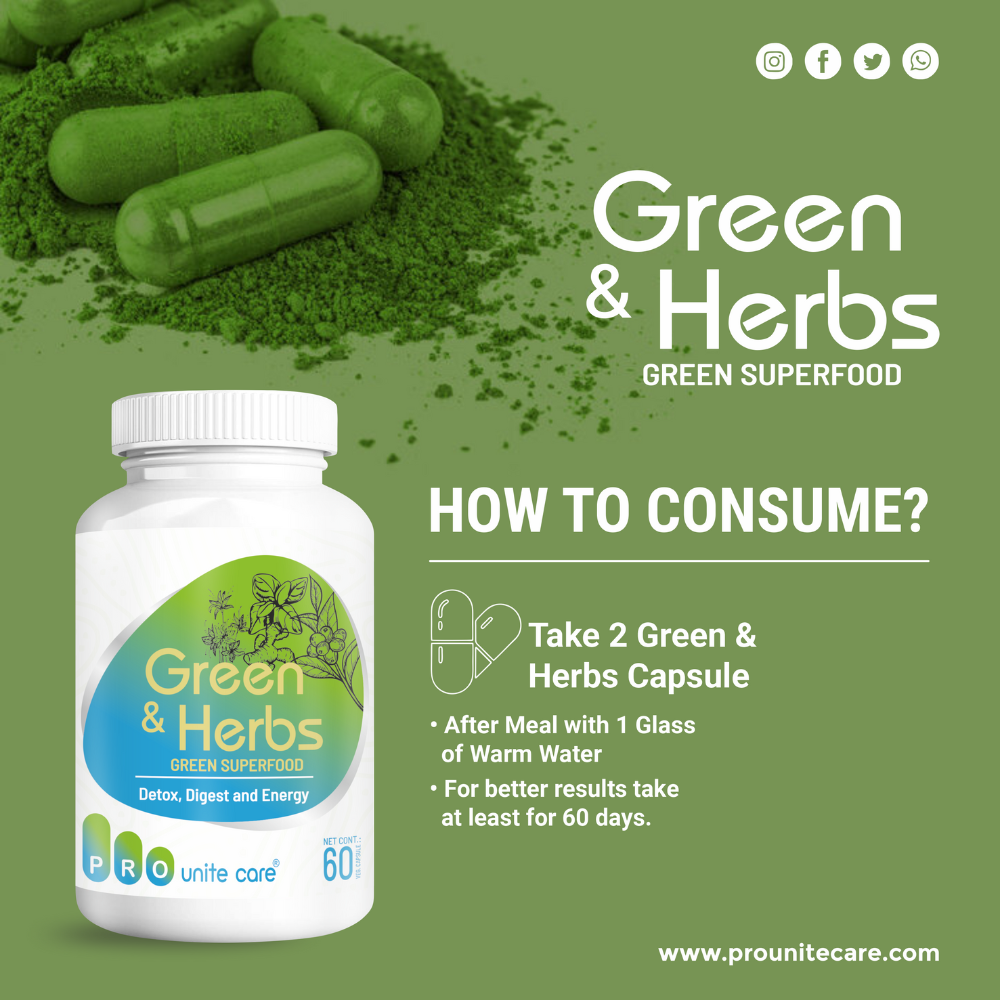 Green & Herbs capsules are a dietary supplement that amalgamates the advantages of green vegetables and various herbs in a convenient capsule form. These capsules typically include a blend of powdered vegetables such as spinach, kale, broccoli, and herbs like parsley, cilantro, and dill.