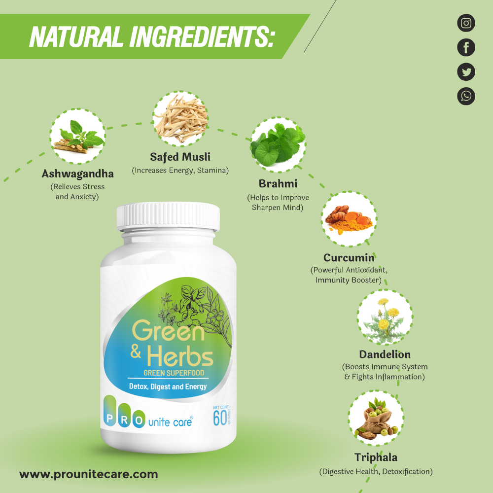 Green & Herbs Green Superfood For Detox, Digest, and Energy 60 Veg Capsules
