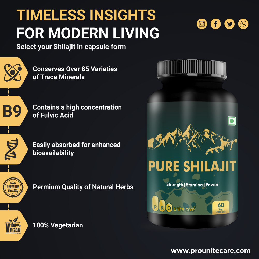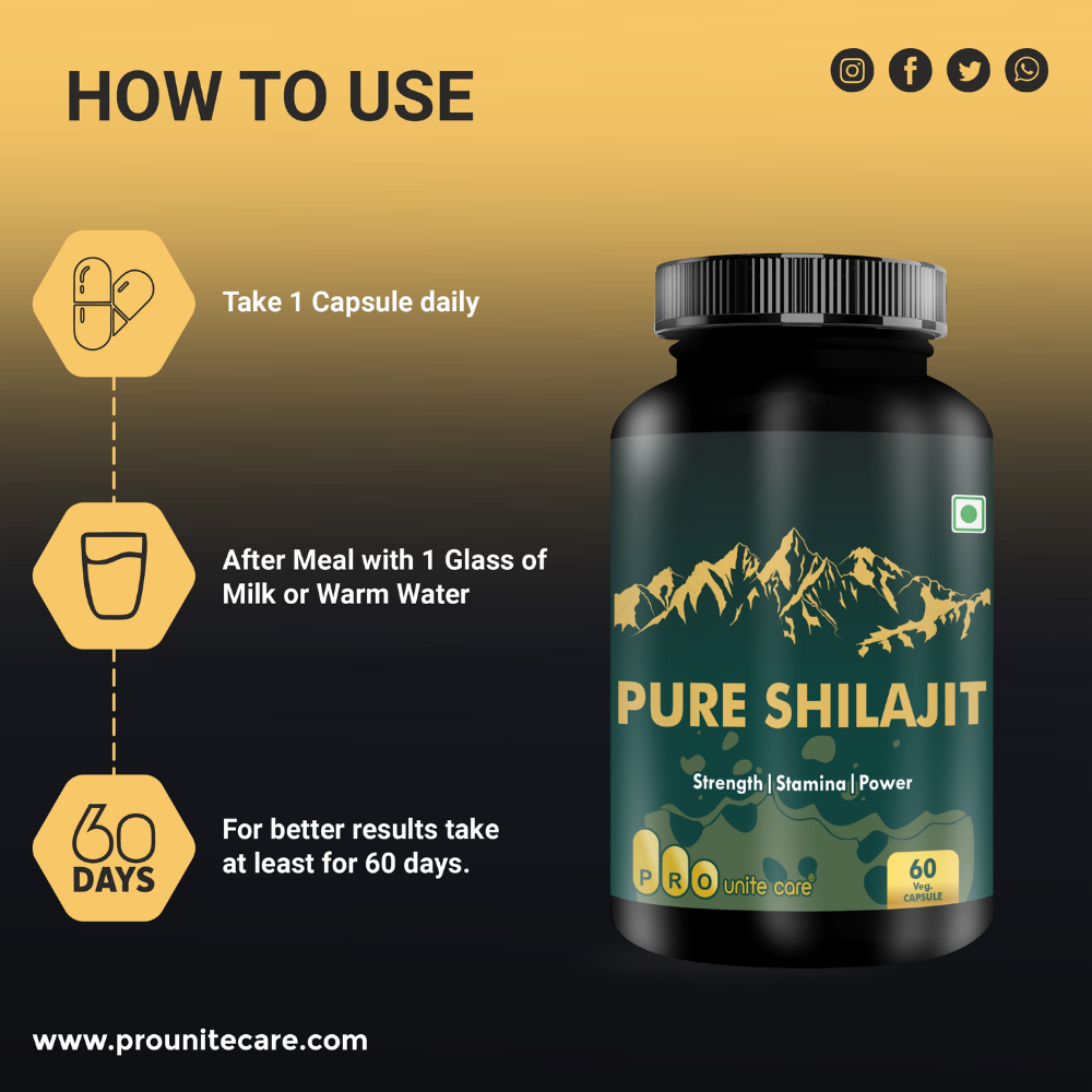 Pro Unitecare Pure Shilajit is rich in essential minerals and fulvic acid to help improve focus, memory, and mental performance. With Shilajit (Asphaltum punjabianum) Safed Musli (Chlorophytum borivilianum) Gokhru (Tribulus terrestris)Kesar (Crocus sativus)Mucuna Pruriens (Kaunch Beej) Ashwagandha (Withania somnifera) for comprehensive support. Pro Unitecare Shilajit is an excellent choice for those seeking to support overall health and wellness.